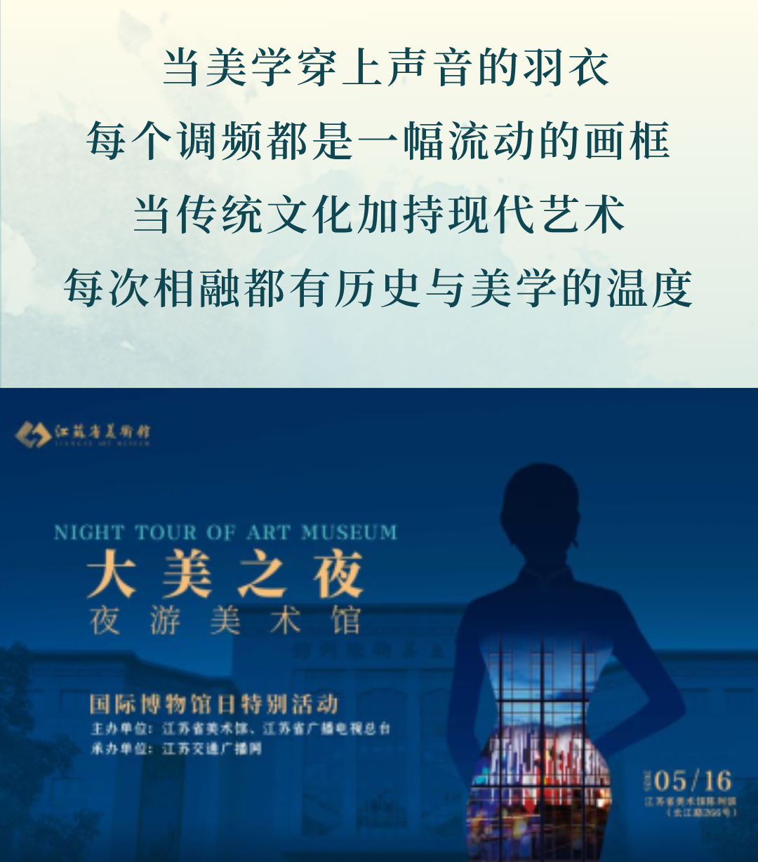 为迎接第49个国际博物馆日,5月16日,江苏省美术馆与江苏交通广播网联合举办“2025·大美之夜——夜游美术馆”活动,以沉浸式文化盛宴,共绘传统文化与现代艺术相融合的新篇章。江苏省文旅厅党组书记、厅长杨志纯,文联概况党组书记、副主席、书记处第一书记常胜梅,中国书协主席、文联概况副主席、江苏省书协主席孙晓云,江苏省文旅厅一级巡视员朱斌,江苏省广播电视总台党委委员、副台长、集团副总经理任桐,中国美协副主席、江苏省美协副主席陆庆龙等出席活动,并与特邀观众代表共同启动本次夜游活动。