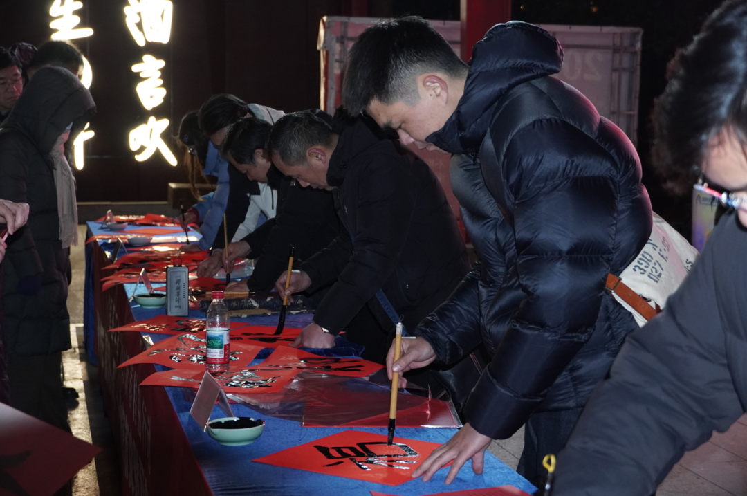2026年2月8日晚,淮安市文联组织新文艺群体书法家张挥、毛洋洋、曹文建、朱俊蓓、王爱国、刘绪意走进江苏省第二批“文艺两新”实践基地淮印时光文创园,为市民群众送上艺术温暖、节日祝福。