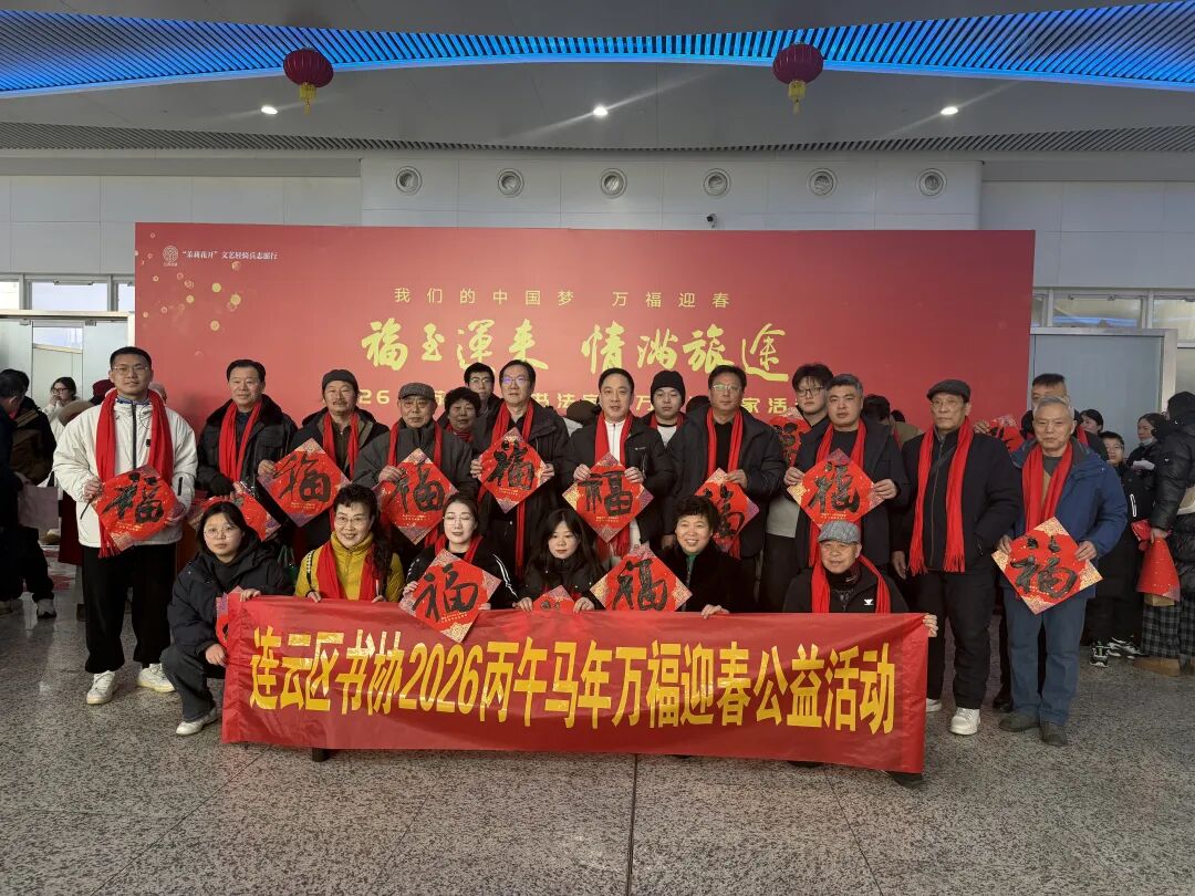 墨香福韵送归雁,笔墨含情满驿程。2月1日,伴随着2026年春运大幕拉开,2026"福至运来 情满旅途"江苏省千名书法家送万福进万家活动(连云港站)在连云港高铁站一楼候车厅举行。