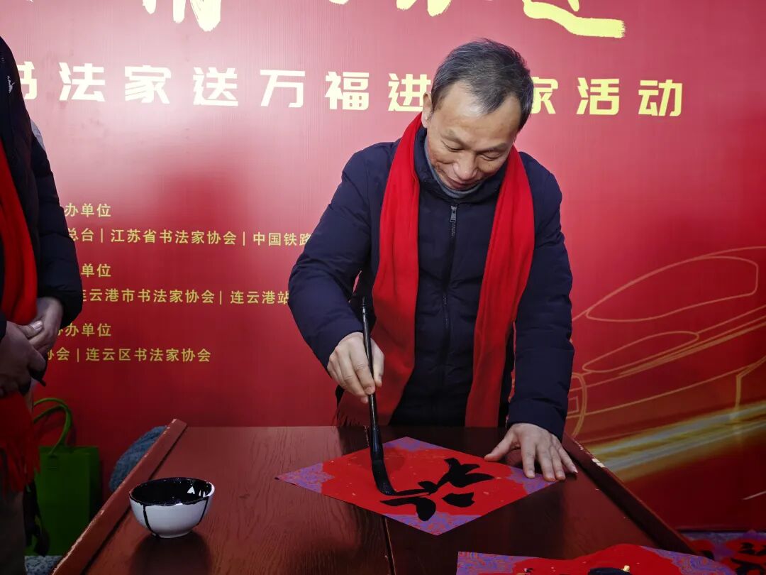 作为江苏省书协文化惠民品牌,此项活动旨在丰富人民群众的精神文化生活,弘扬中华优秀传统书法文化,为南来北往的春运旅客献上吉祥如意的美好祝福,多年来已成为江苏大地上一道靓丽的新年文化风景线。此次连云港站分会场活动由省文学艺术界联合会、新华报业传媒集团、省广播电视总台、省书法家协会、中国铁路上海局集团公司联合主办,连云港市文联、铁路连云港站、连云港市书协承办,各县区书协协办。高铁赣榆站、东海站、灌云站、灌南站也同步举行了分会场活动。