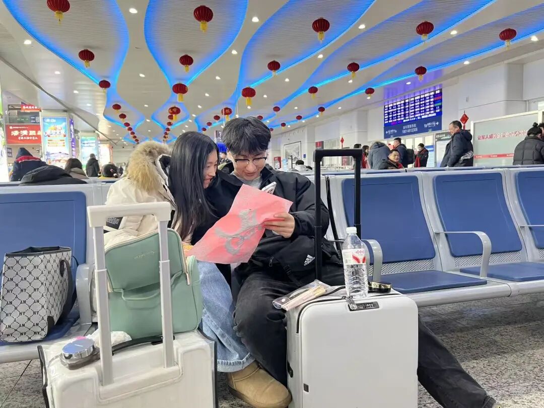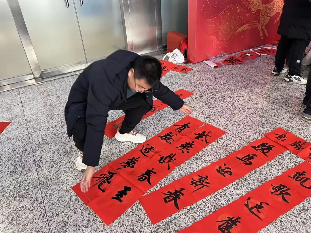 活动现场,连云港火车站候车大厅内暖意升腾,年味先行。作为全省春运送福公益活动的分会场,连云港市书协已连续九年坚守春运首日送福一线,用翰墨温情助力旅客归途。书法家们凝神挥毫、泼墨生香,将对新春的期许、对生活的祝福凝于笔端,近千副大红春联与福字跃然纸上,每一副都承载着吉祥寓意与美好祈愿。书法家们亲手将这份份墨香祝福送到南来北往的旅客手中,让奔波的旅人在踏上归途之初,便提前邂逅了浓郁的节日氛围,更在笔墨流转间真切领略到中国书法的独特韵味与文化魅力。拿到手写春联与福字的旅客们个个喜笑颜开,爱不释手地反复端详,纷纷感慨 “手写的春联才够味,这就是过年最地道的感觉”“带着墨香的祝福,让归途都变温暖了”。不仅是旅客,忙碌在岗位上的车站工作人员,也趁着工作间隙赶来现场,在墨香与喜气中卸下几分疲惫,这场暖心活动为他们紧张的值守工作增添了满满的喜庆与欢乐,更让原本繁忙的候车大厅,因一副副红联、一张张福字焕发生机,为即将到来的春节,铺就了一抹温暖又亮丽的底色。