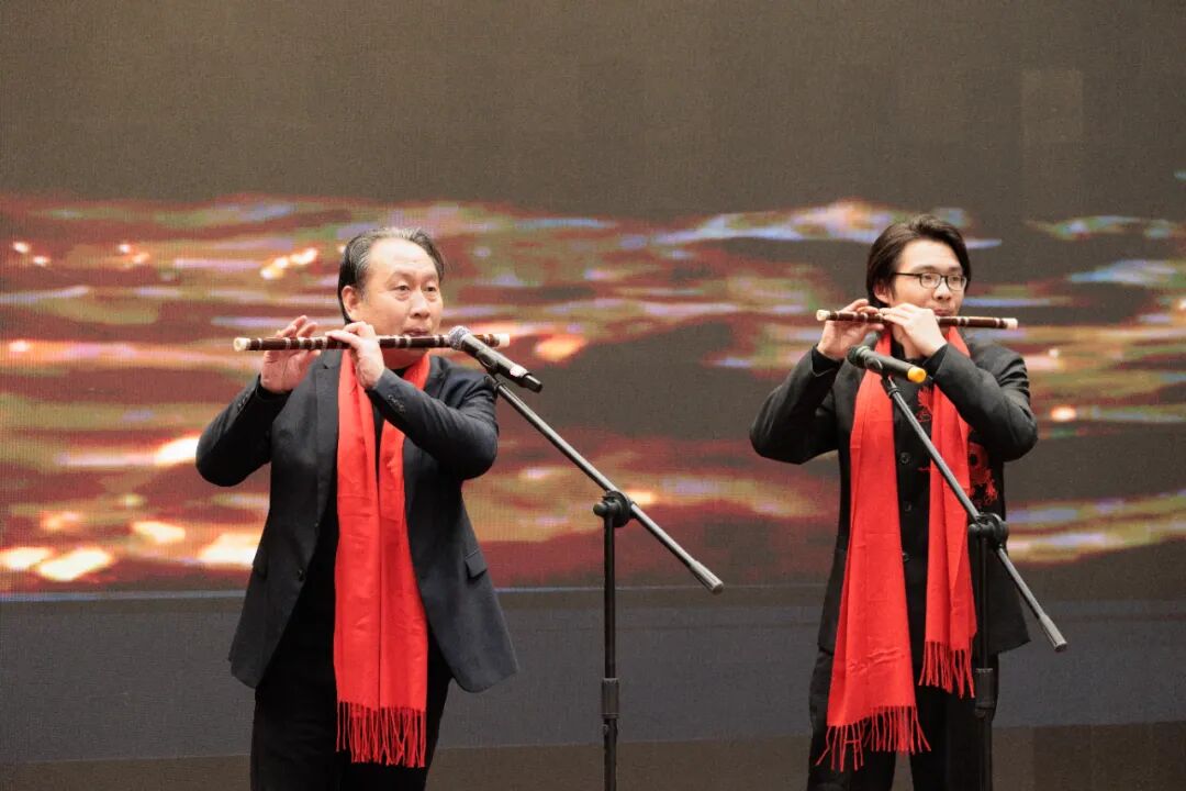 晚会在热烈恢弘的开场歌舞《给祖国拜年》中拉开帷幕。随后,各类节目轮番登场、亮点纷呈。魔术《万象更新》、诗歌朗诵《岁月织锦、百花迎春》、笛子二重奏《春晓》、经典京剧《智取威虎山》等营造出欢乐喜庆、凝心聚力的浓厚氛围。由中国铁路文工团演员张伟带来的单口相声《高徒出名师》诙谐幽默、妙趣横生。著名男高音歌唱家于乃久带来的歌曲《赶上好时候》《举杯吧,朋友》礼赞新时代美好生活,赢得全场热烈掌声。作品展示《百花齐放》汇聚美术、书法、民间文艺原创精品,展现了我市文艺家创作风采与传承成果。采访互动环节,名师代表陈武、张晓晖聚焦初心与坚守,表达了文艺工作者深耕艺术、薪火相传的赤诚之心,并为现场观众送上了真挚的新春祝福。晚会在合唱《春节吉祥》中落下帷幕。