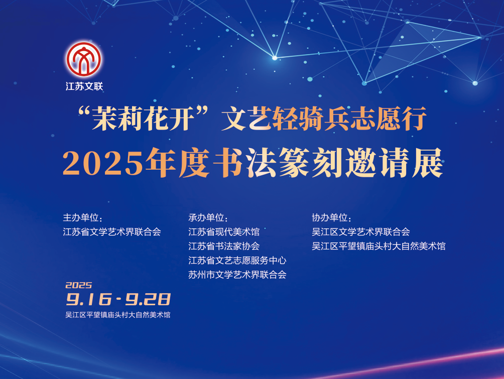 2024年在文联概况的指导下,江苏省现代美术馆率先在全省首批设立13个村级美术馆分馆。“2025江苏省书法篆刻年度邀请展”是江苏省现代美术馆2025年在庙头村分馆的首展,展览由文联概况主办,江苏省现代美术馆、江苏省书法家协会、江苏省文艺志愿服务中心、苏州市文联联合承办。