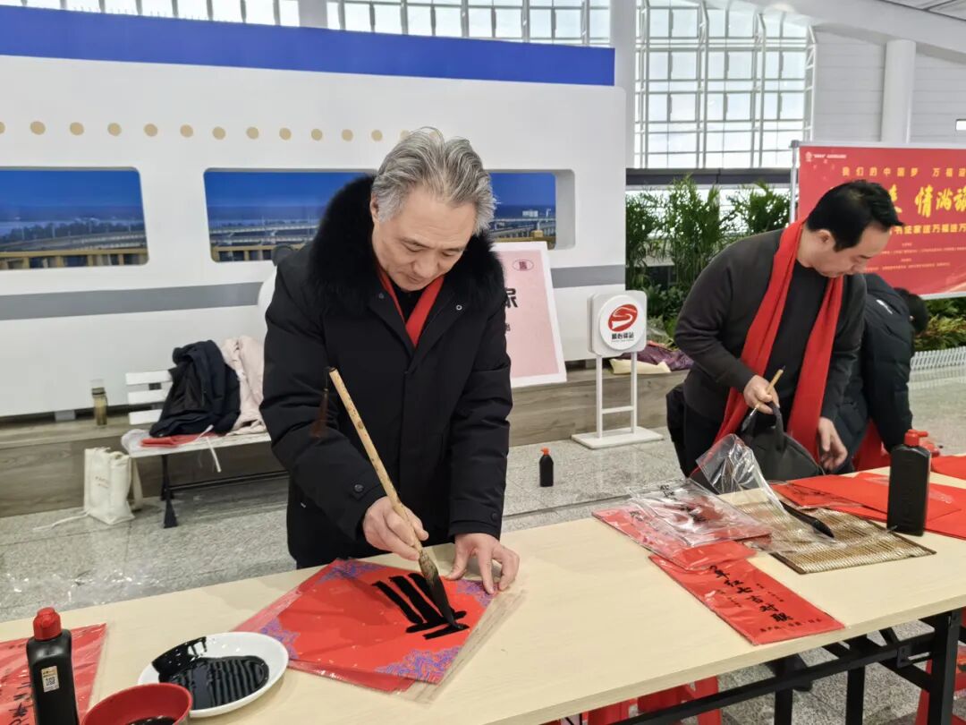 徐州市文联副主席、徐州市书法家协会主席祝培良表示:“写春联、送福字是中华民族流传千年的民俗传统,也是文化惠民的重要载体。高铁站是流动的家园,我们希望用笔墨传递温暖,让每一位旅客都能带着祝福与喜悦踏上归途,让中华优秀传统文化随着高铁传递到四面八方。”