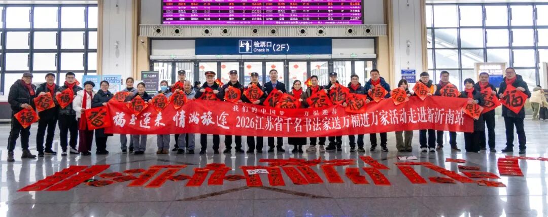 春运将至,年味渐浓。为传承中华优秀传统文化,让返乡旅客在归途中感受新春暖意与文化浸润。根据江苏省书法家协会工作要求。2月1日上午,由江苏省文学艺术界联合会、新华报业传媒集团、江苏省广播电视总台、江苏省书法家协会、中国铁路上海局集团公司主办,徐州市书法家协会、新沂市书法家协会、邳州市书法家协会、睢宁县书法家协会、铁路徐州东站协办的2026“ 福至运来 情满旅途 ——江苏省千名书法家送万福进万家活动(徐州分会场)在铁路徐州东站举行。