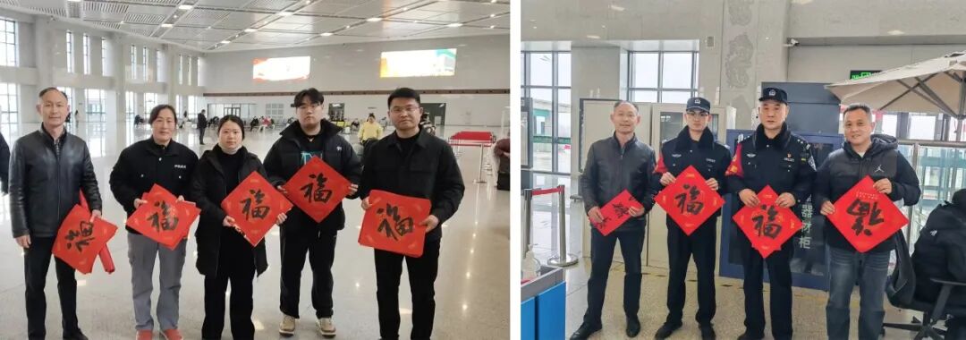 活动现场,旅客们或驻足观赏笔走龙蛇的创作过程,或轻声交流心仪的联语内容,脸上洋溢着期待与喜悦。“请帮我写一副‘龙马精神’的春联,再添几个福字!”书法家们挥毫泼墨为南来北往的旅客送上饱含祝福的春联与“福”字,用笔墨书香为春运之路注入文化温度,让他们在提前感受到节日气氛的同时,感受书法的文化魅力。喜获春联的旅客喜笑颜开,纷纷表示“带着书法家写的福字回家,感觉年味儿更足了,这是最特别的新春礼物。”