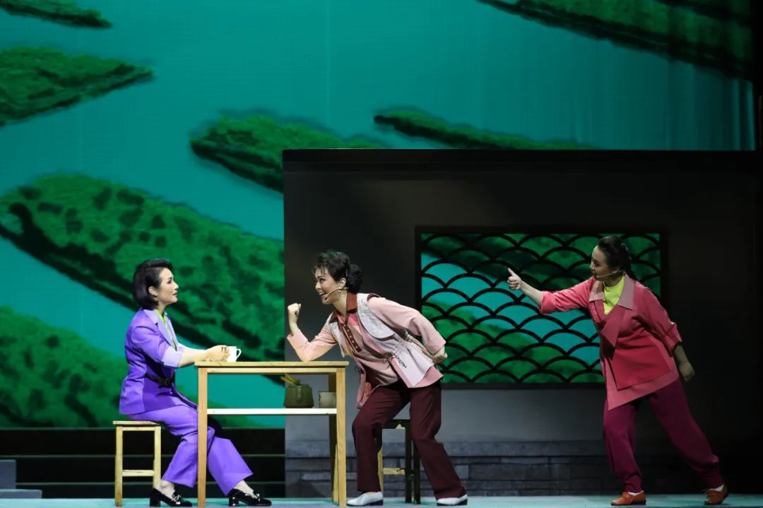 群场戏是作者一直刻意留心和打造的重点,历来如此且不断进步。本剧当中“烫百叶”一段儿四人群场戏,相信给很多观众留下了深刻印象。另外“戏中戏”也是袁连成追求好看的另外一个套路,本剧当中插入的王婆和穷秀才的表演也贴切自然,增强了戏曲的趣味性。至于注重声腔和戏曲唱词的贴合,更是袁连成的拿手好戏,这一点仅从淮剧《祥林嫂》当中已经流传二十年的《天问》的一段“垛句”即可见其一端。
