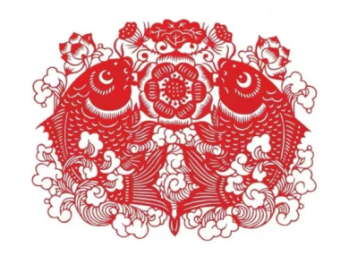 张钧《双莲花鱼》剪纸
