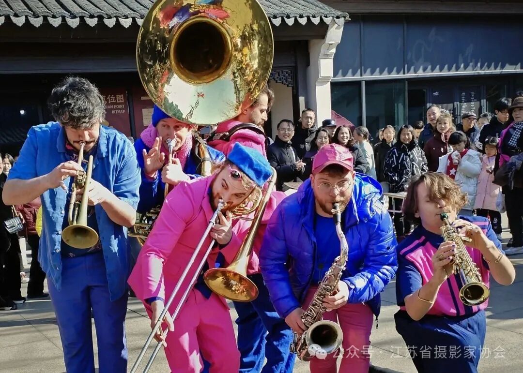 蛇年农历大年初一,2025“阳羡过大年”在宜兴雅达·阳羡溪山小镇红火开幕,来自国外的一支顽童乐队为众多游客送上新春欢乐和美好祝福。丁焕新 摄