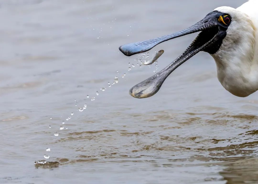 2025年2月20日,在深圳湾公园的海滩边,黑脸琵鹭张开标志性的琵琶状长喙,水珠飞溅间,一条小鱼正从喙中滑落。这看似平常的捕食场景,却是小鱼生命的末路。在大自然残酷的生存法则下,小鱼拼尽全力地挣扎,终究难以逃脱被猎食的宿命。