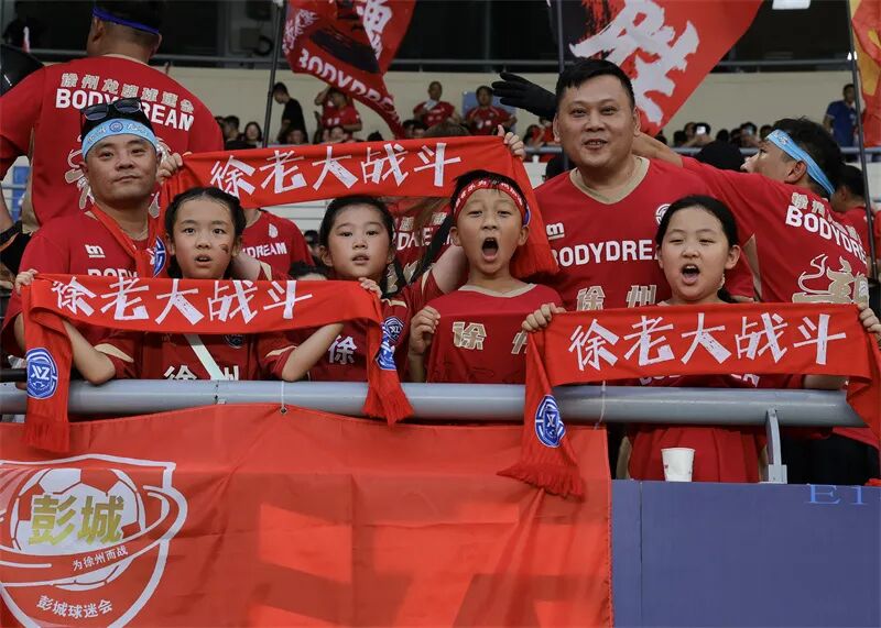 南京队主场对阵徐州队,现场球迷为球队加油助威。泱波 摄