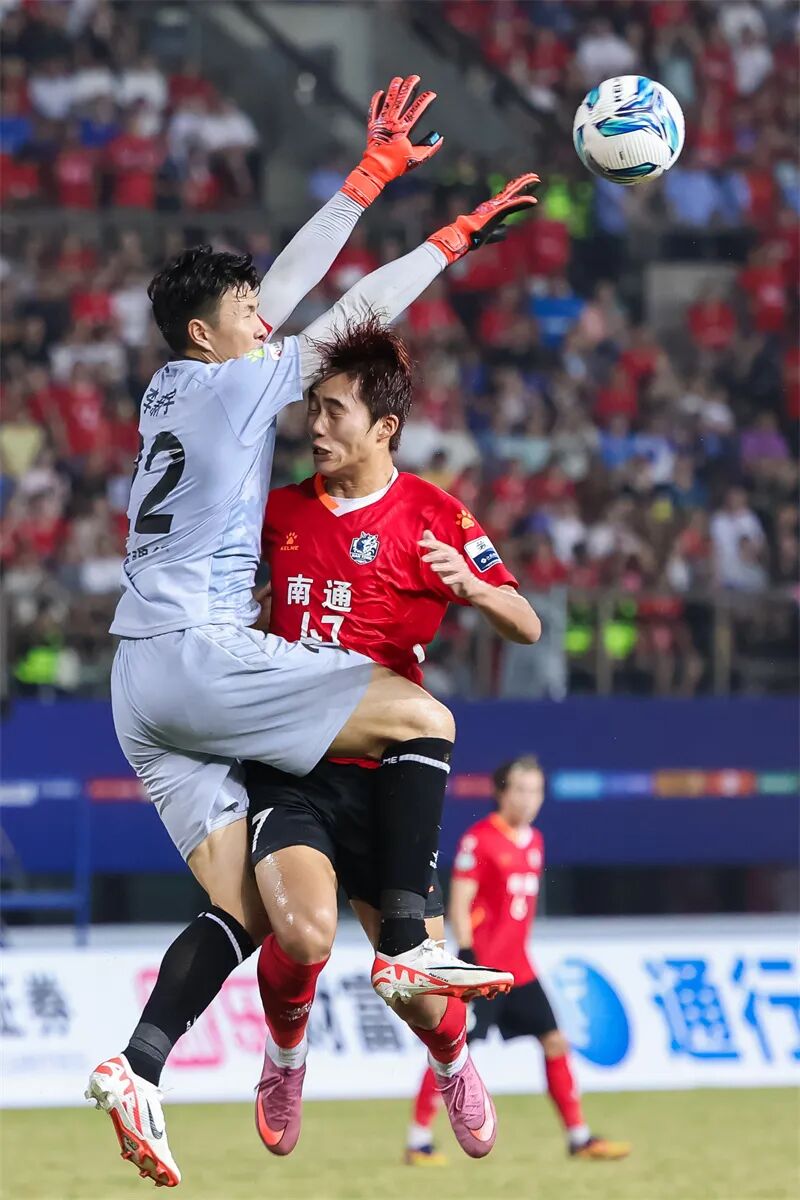 南通队以1比0战胜扬州队,在“苏超”比赛中保持十战全胜。蒋文超 摄