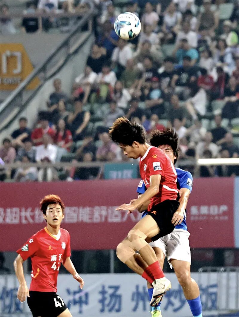 9月6日,“苏超”迎来第十一轮燃情对决,最强战力、全胜军团南通队客场踢馆扬州队。余萍 摄