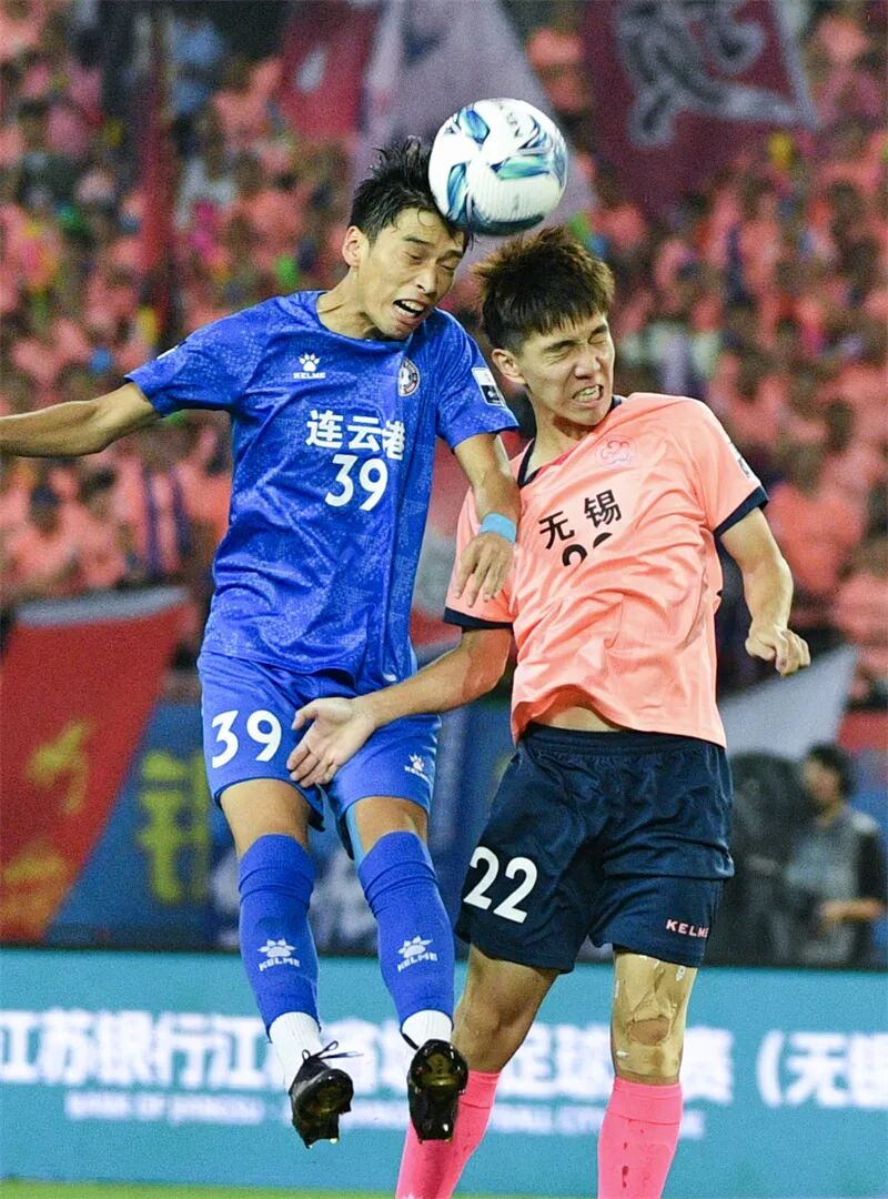 9月6日,“苏超”第十一轮无锡队对阵连云港队的比赛在江阴市体育中心体育场打响,双方激战90分钟战成0比0。吴俊 摄