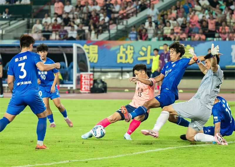 无锡队主场对阵连云港队,经过激战,最终双方以0比0握手言和。黄一清 摄