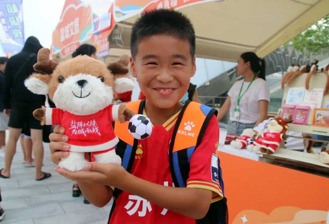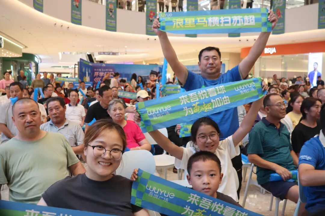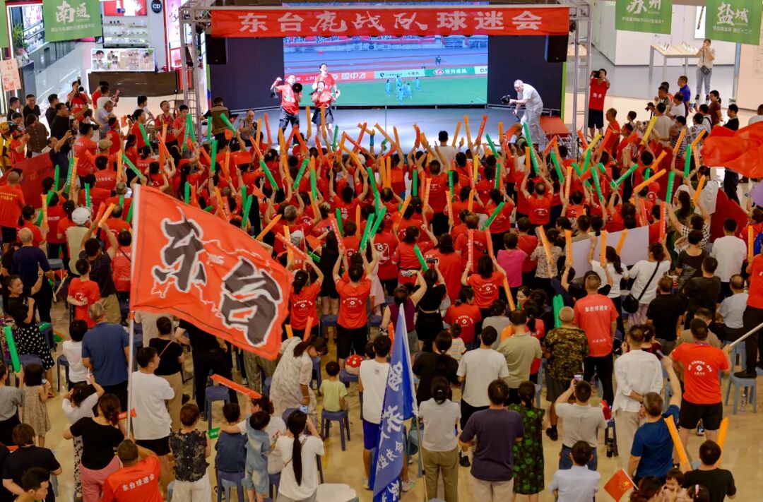 9月7日,“苏超”第十一轮,苏州VS盐城第二现场,东台球迷会在东台市德润广场现场为盐城队加油助威。曹永祥 摄
