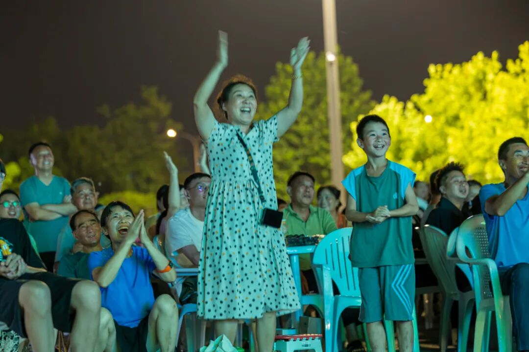 9月7日晚,“苏超”第十一轮淮安队主场迎战泰州队,在淮安市涟水县滨河吾悦广场“第二现场”,涟水球迷全家总动员为淮安队加油助威。王东 摄