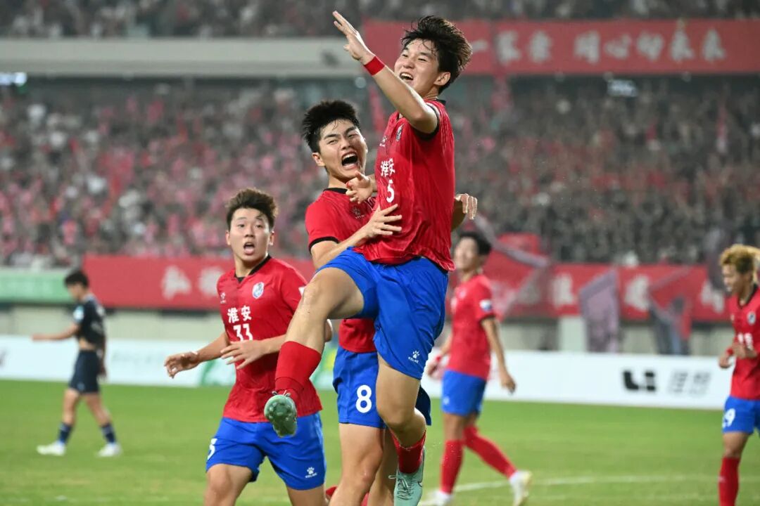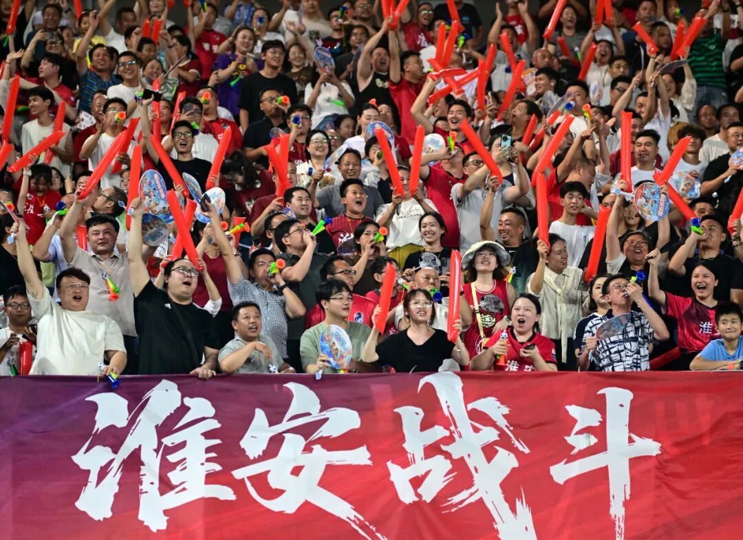 2025年9月7日晚,“苏超”第十一轮比拼,淮安队主场迎战泰州队,最终,淮安队3:1战胜泰州队。肖勇 摄