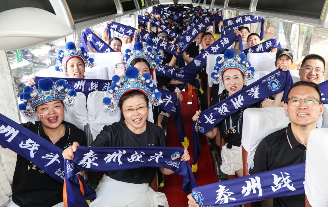 泰州球迷满怀激情出发前往淮安观赛。方雨婷 摄