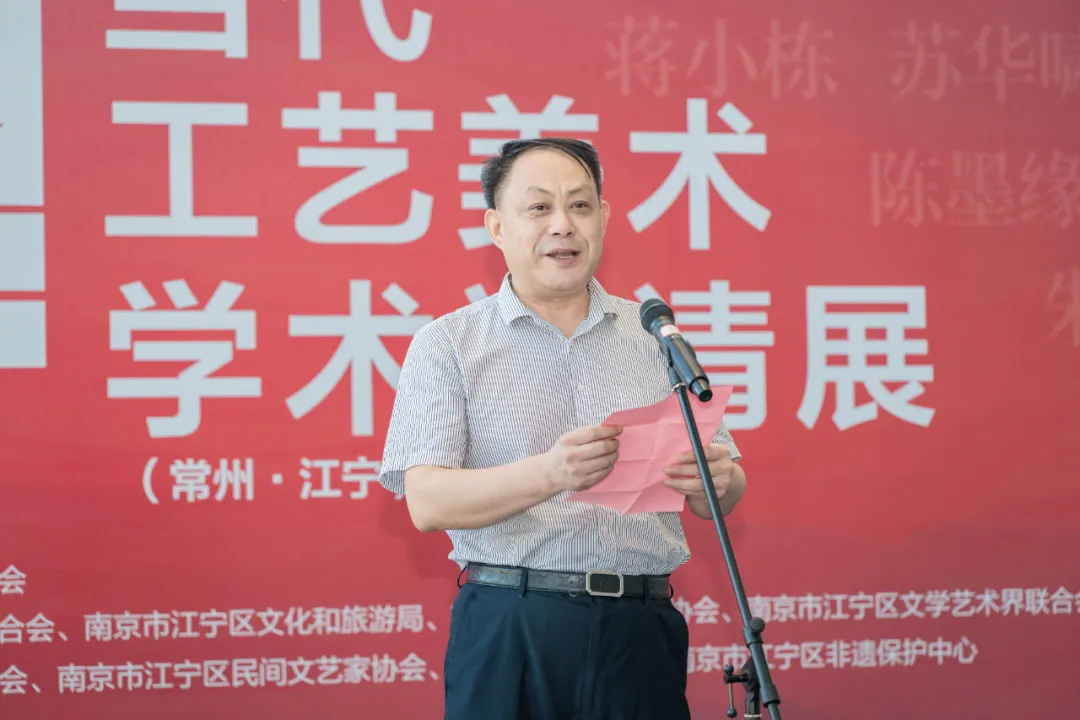 文联概况党组成员、书记处书记何超,中国工艺美术学会专家委员会副主任、江苏省工艺美术协会(学会)名誉会长马达,江苏省民间文艺家协会副主席葛志文、沈华强,常州市文联二级调研员周勇刚,江宁区文化和旅游局局长朱长云,南京市民协、常州市民协、江宁区文联负责人等以及本次展览参展的常州江宁两地艺术家出席开幕式。