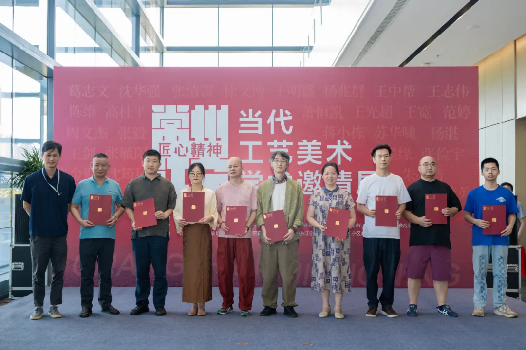 9月16日,由江苏省民间文艺家协会指导,常州市文联、江宁区文旅局、南京市民间文艺家协会、江宁区文联联合主办的“匠心精神——当代工艺美术学术邀请展(常州·江宁)”在江宁美术馆开幕。展览邀请了非物质文化遗产传承人和当代手工艺人在内的近 30 位艺术家参展,展品涵盖玉雕、竹刻、牙雕、核雕、玉雕、石雕、漆艺、铜雕、古琴、紫砂、剪纸(刻纸)、木雕、陶瓷等十多个门类总计53件展品。