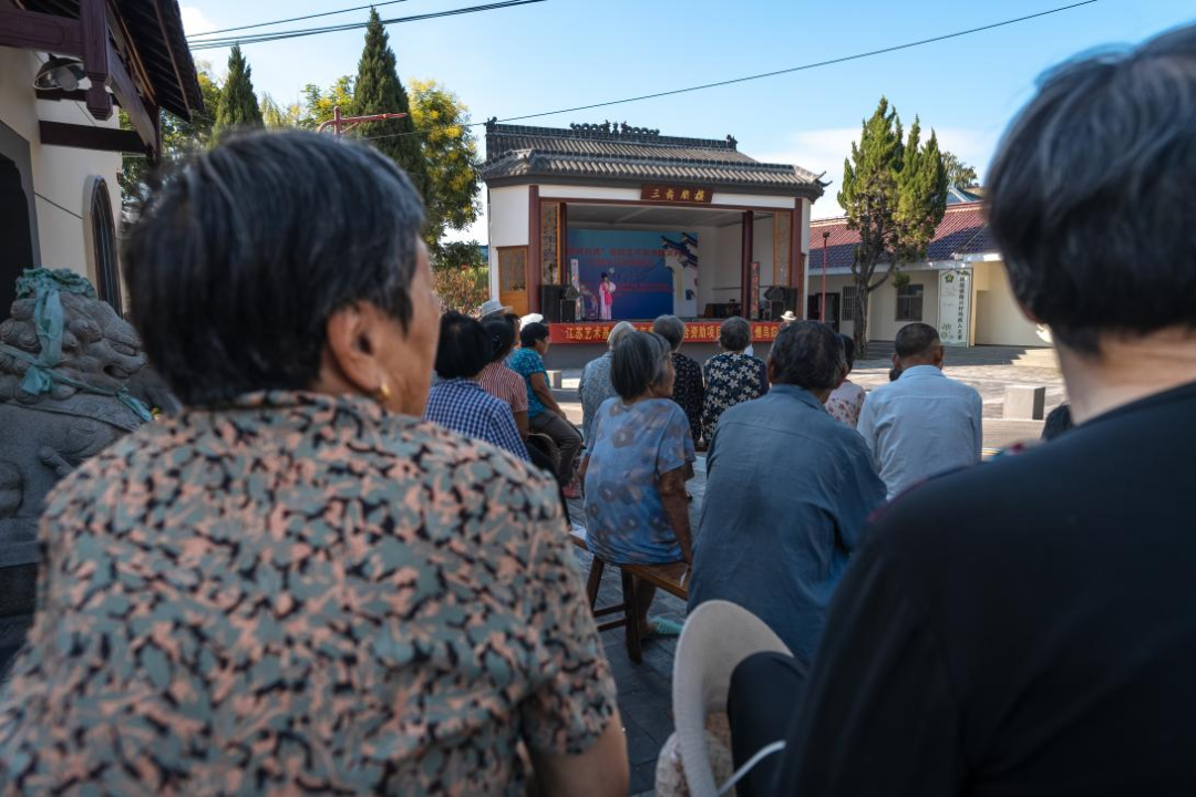 “听说今天有戏看,我中午吃完饭就来了。”自发前来的村民中有七十余岁的老人,也有稚气未脱的孩童,甚至还有从邻村赶来的戏迷。村民丁建宏看得入神,“我从小听戏长大,以前要坐船去镇上看,现在戏楼修到村口,演员还是市里请来的团队,太方便了!在家门口看戏,特别的开心。”他感慨道。
