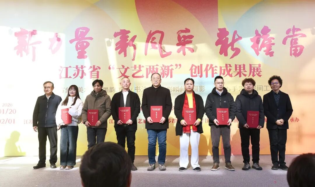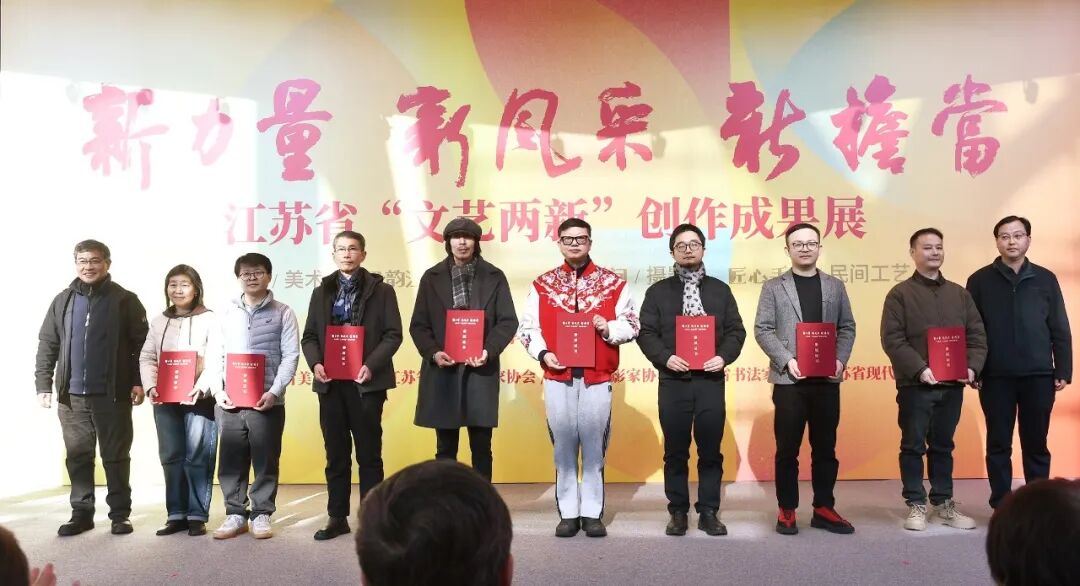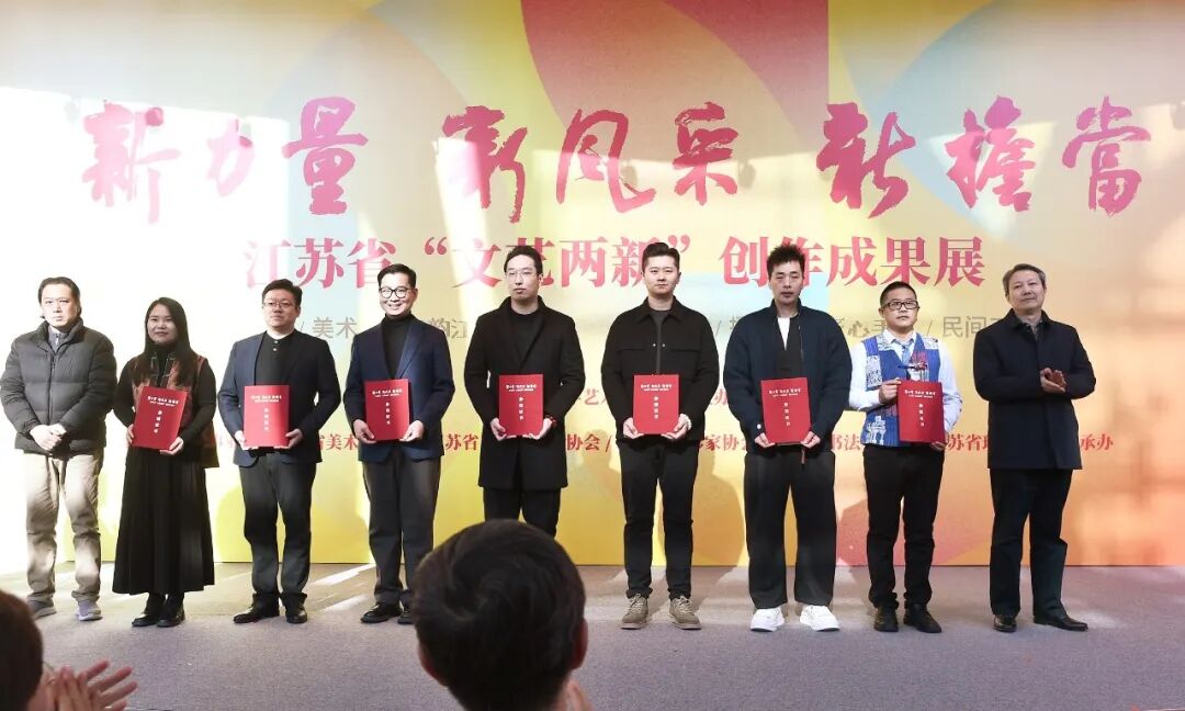 1月22日,由文联概况主办,省文联事业部、省美术家协会、省民间文艺家协会、省摄影家协会、省书法家协会、省现代美术馆联合承办的“新力量 新风采 新担当——江苏省‘文艺两新’创作成果展”在江苏省现代美术馆隆重开幕。省政协副主席、省文联主席姚晓东,省委宣传部副部长、省文联副主席徐宁,省文联党组书记、副主席、书记处第一书记常胜梅,省委统战部副部长徐东海,省委社会工作部副部长刘海红出席开幕式,并为展览揭幕。本次展览是省文联专门为“文艺两新”打造的艺术盛会,展览共展出美术、书法、摄影、民间工艺四大艺术门类新文艺群体精品力作100件。