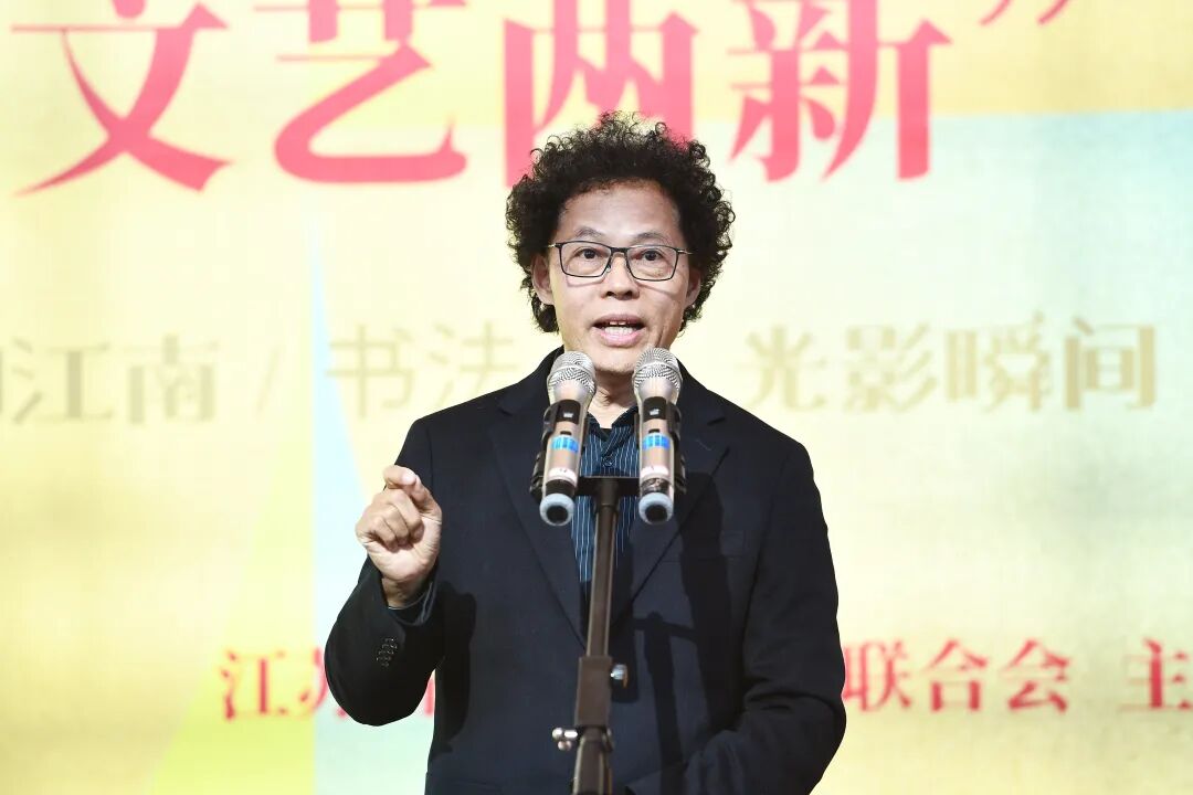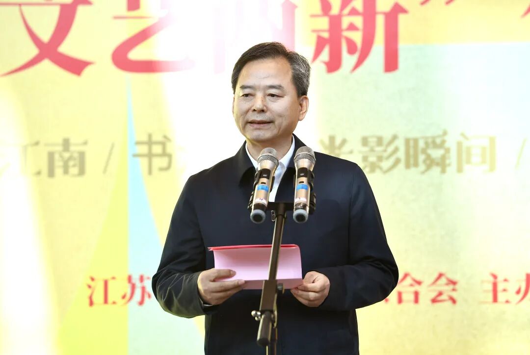 开幕式上,省文联一级巡视员刘轩明讲话,他说本次展览既是对我省“文艺两新”创作成果的一次集中检阅,也是省文联贯彻落实习近平总书记关于“文艺两新”重要论述的生动实践。省文联高度重视“文艺两新”工作,将“文艺两新”工作作为文联工作的重点和突破口,通过出台制度、创建基地、开展培训、项目扶持、健全组织、搭建平台,加强对“文艺两新”的团结引领,推动其在“强富美高”新江苏建设中展现更大担当。