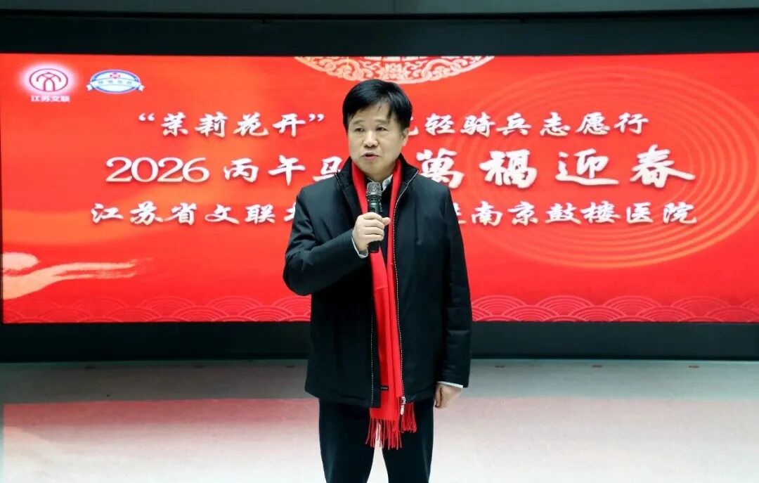 为深入学习贯彻党的二十届四中全会精神,全面落实加快建设健康中国的决策部署,持续深化人文医院建设,让新春的温暖与文化的馨香浸润医疗一线,1月29日上午,由江苏省文学艺术界联合会主办,江苏省书画院、江苏省书法家协会承办的“茉莉花开”文艺轻骑兵志愿行2026年“万福迎春”活动,在南京鼓楼医院钢琴厅盛大启幕。
