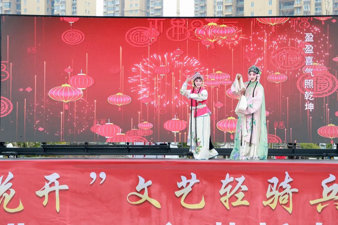 文艺演出环节精彩纷呈。扬州市曲艺研究所带来的扬州清曲《又见茉莉花》,以悠扬唱腔再现江苏文化符号,拉开了演出序幕。接下来的微型曲艺剧《“苏超”来了》,传统与现代结合,文艺与体育交织,碰撞出别样国风韵味。武术表演《武动童年》中,来自句容市天王中心小学的少儿武者以饱满的热情、标准的招式,展现少年意气风发,将现场气氛推向了高潮。由戏剧名家组成的文艺志愿者小队带来了戏曲联唱,越剧《梁祝·十八相送》、京剧《智取威虎山》选段、扬剧《新春观灯》等经典桥段轮番上演,让现场戏迷过足瘾,赢得阵阵掌声。演出在歌舞《春风十万里》中圆满落下了帷幕。