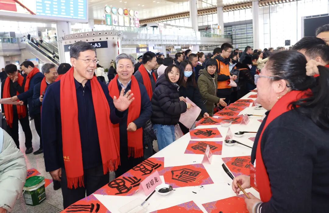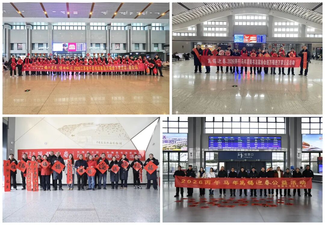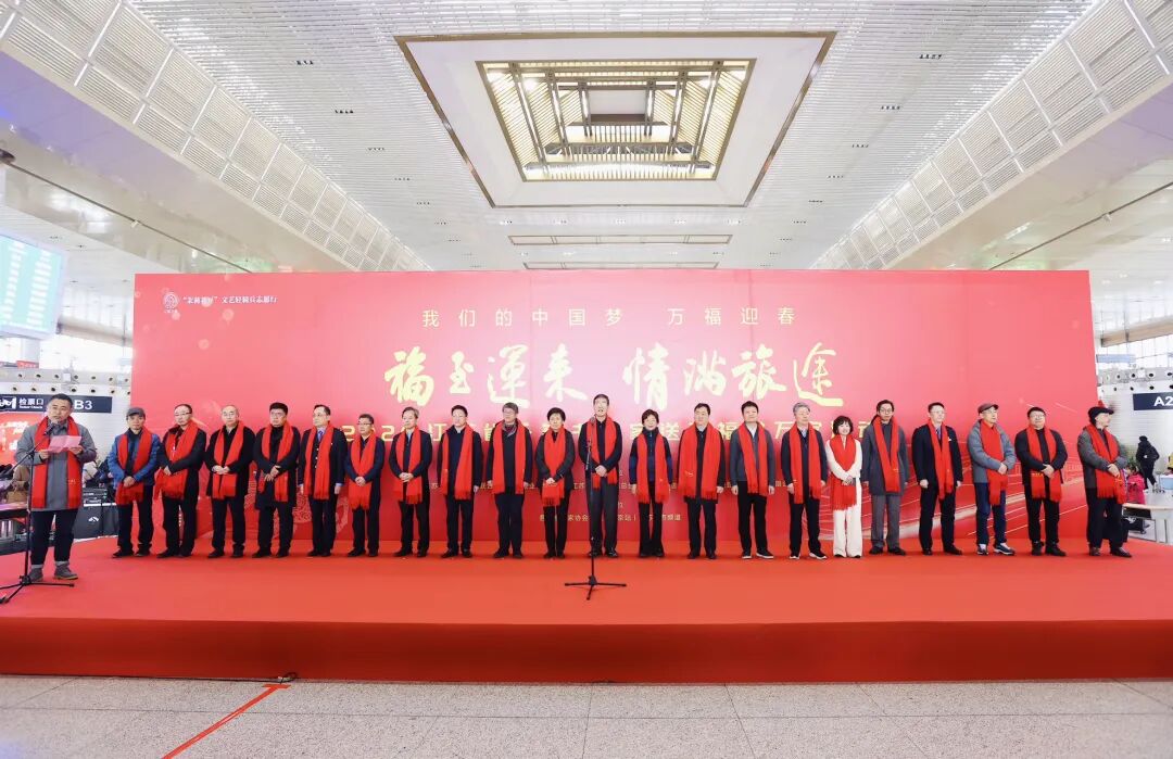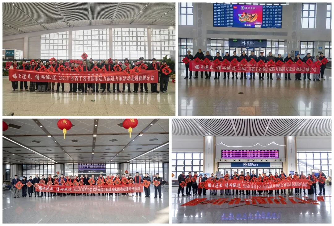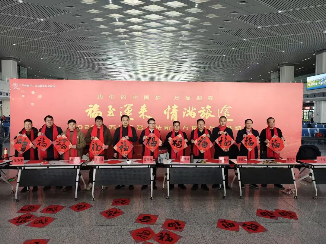 2月1日,由江苏省文学艺术界联合会、新华报业传媒集团、江苏省广播电视总台、江苏省书法家协会、中国铁路上海局集团公司联合主办,江苏各市书法家协会、铁路南京站、江苏省广播电视总台城市频道协办的“万福迎春”2026“福至运来 情满旅途”——江苏省千名书法家送万福进万家活动启动仪式在南京南站举行。