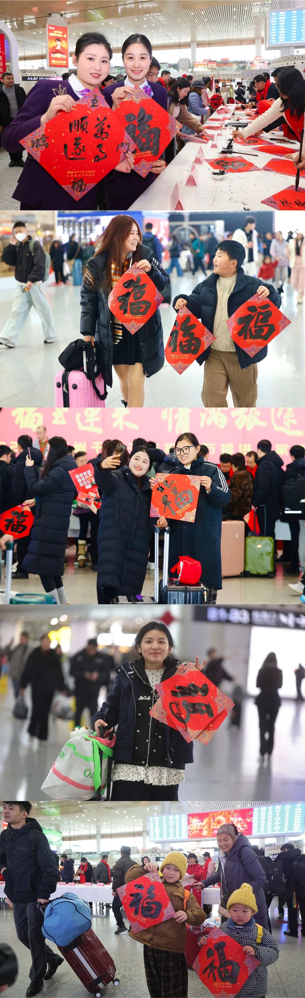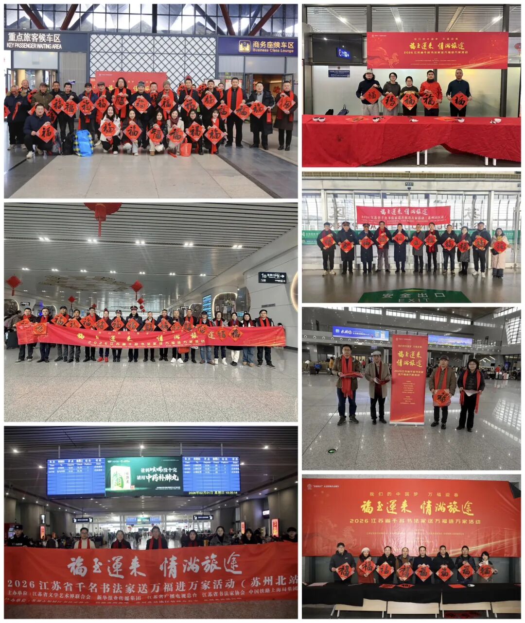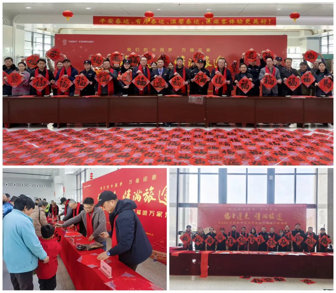 2月1日,由江苏省文学艺术界联合会、新华报业传媒集团、江苏省广播电视总台、江苏省书法家协会、中国铁路上海局集团公司联合主办,江苏各市书法家协会、铁路南京站、江苏省广播电视总台城市频道协办的“万福迎春”2026“福至运来 情满旅途”——江苏省千名书法家送万福进万家活动启动仪式在南京南站举行。
