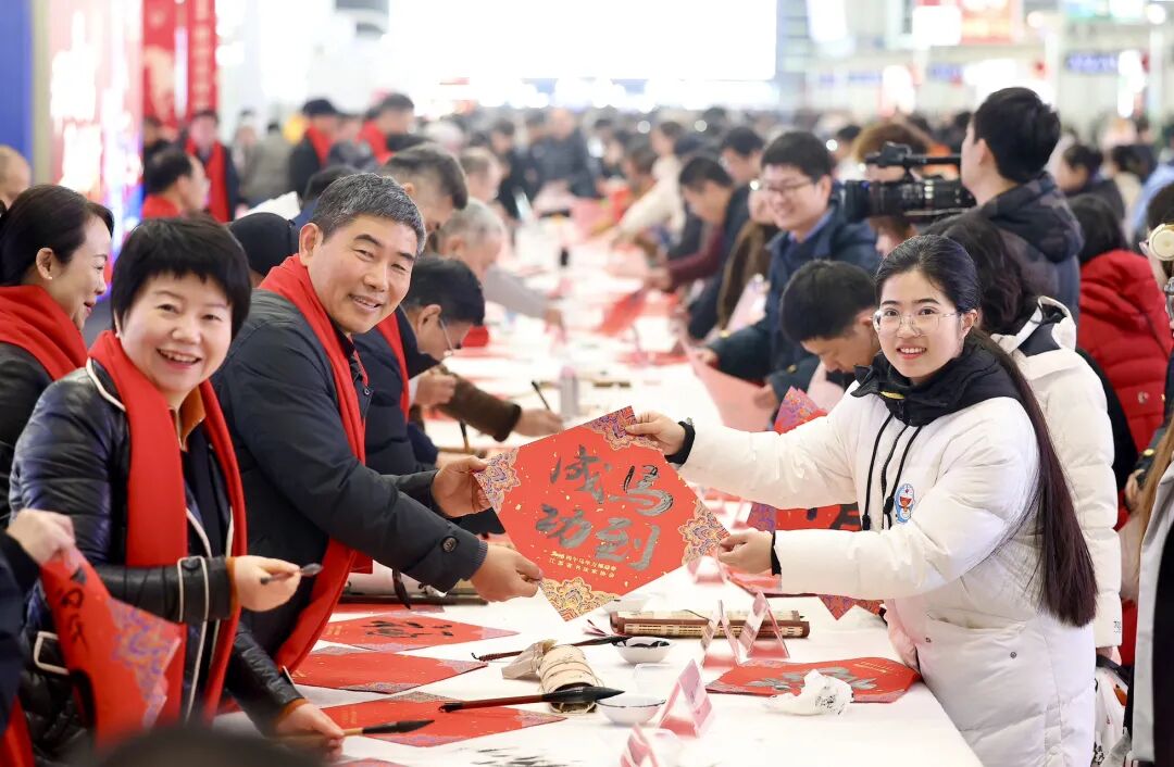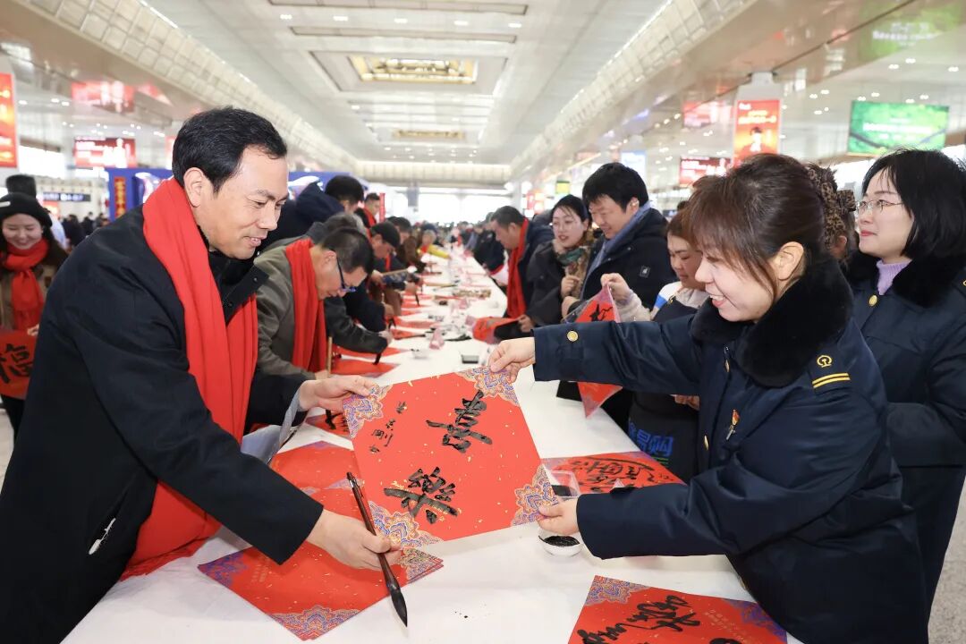 百余名书法家现场挥毫为来往旅客送去新年祝福