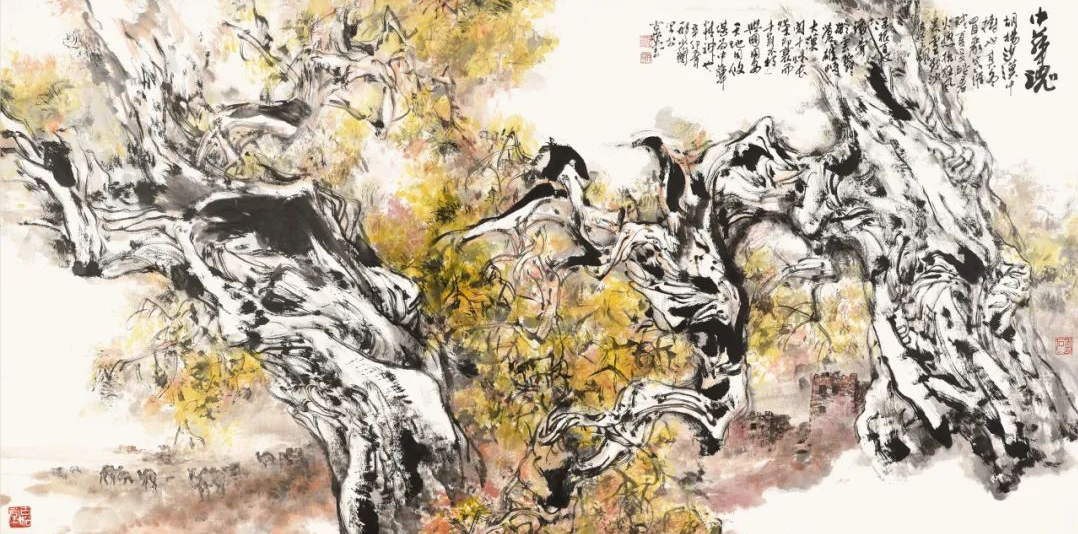 “一张画画得好才能有正能量,画得不好就没有正能量,人家不要看。好的画人们会驻足看,画中的内容也对人有激励作用。”邢少兰谈起自己许多作品背后蕴含的精神,觉得自己数十年如一日,始终在追求心中那份“正能量”。在《中华魂》中,他以大漠中倔强生长的胡杨树比喻中华民族顽强不屈的品格,在《清风明月》里,可以窥到他藏于笔墨中“山上的明月加上清风,取之不尽用之不竭,我们能共同享受”的感恩之心……于写意山水间,融入生命的青春感、时代的蒸蒸然。